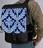 Whether from home to the office, on a business trip or to school, the Blue Color Damask Design BackPack School Bag Book Bag keeps you comfortable and your cargo safe and sound - this bag features pockets on the outside below the flap for your cellphone, pens, ipod, notebook etc. and also plenty of space to store your textbooks, folders, files or a laptop, etc. The bag is big enough to fit upto a 17inch laptop and the padded shoulder strap will ensure that it is easy to carry - The vibrant image on the front is professionally printed and will not fade or peel with time-This bag will surely be an eye catcher wherever you go with it